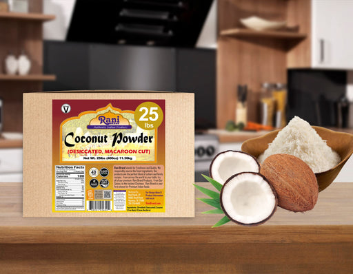 Product Type: Coconut PowderPackaging: BoxNet Wt.: 400oz (25lbs) 11.36kgProduct of India Ingredients: Coconut Fine Powder (Desiccated, Macaroon Cu...