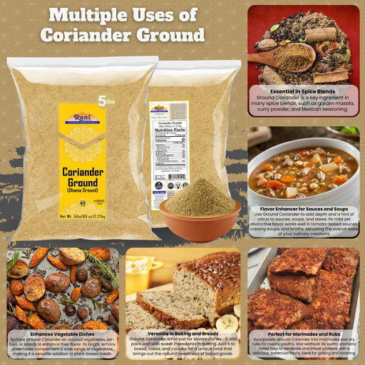 Product Type: Ground PowderPackaging: Plastic BagNet Wt. : 80oz (5lbs) 2.27kgProduct of India Ingredients: Ground Coriander Seeds You'll LOVE...