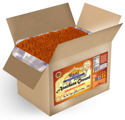 Product Type: Ground PowderPackaging: Bulk BoxNet Wt. 400oz (25lbs) 11.36kgProduct of IndiaIngredients: Ground Anardana (Pomegranate) Seeds You...