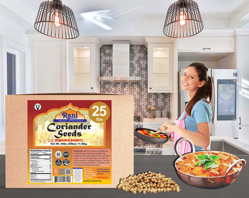 Product Type: SeedsPackaging: Bulk BoxNet Wt. : 400oz (25lbs) 11.36kgProduct of India Ingredients: Coriander Seeds, India You'll LOVE our Whole...