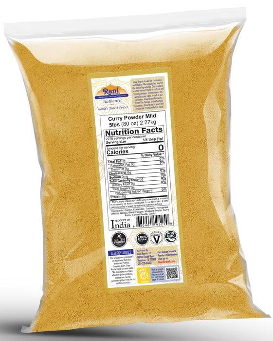 Rani Curry Powder Mild Natural 10-Spice Blend (5lbs) 2.27kgs Bulk ~ Salt Free | Vegan | No Colors | Gluten Free Ingredients | NON-GMO | Kosher | NO Chili