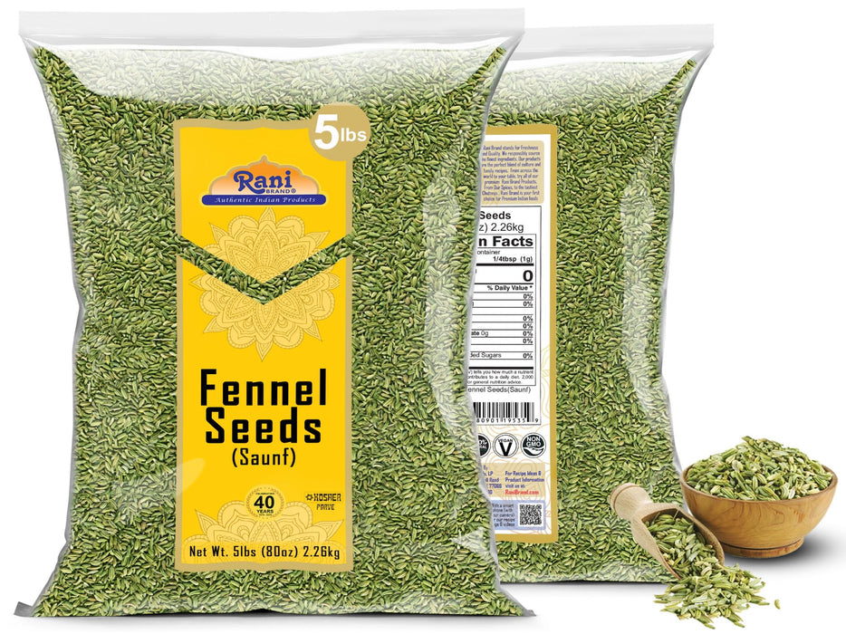 Rani Fennel (Saunf) Seeds Whole, Indian Spice 80oz (5lbs) 2.26kg ~ All Natural | Gluten Friendly | NON-GMO | Kosher | Vegan | Indian Origin