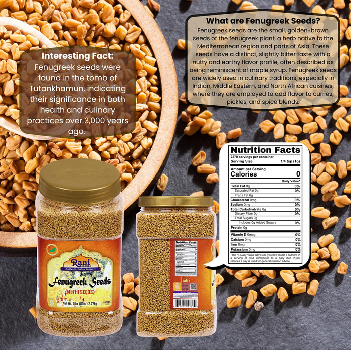 Rani Fenugreek (Methi) Seeds Whole 80oz (5lbs) 2.27kg Bulk PET Jar, Trigonella foenum graecum ~ All Natural | Vegan | Gluten Friendly | Non-GMO | Kosher | Indian Origin, Used in Cooking & Ayurvedic