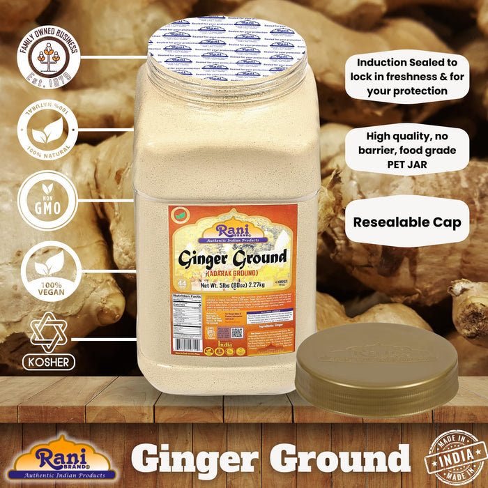 Rani Ginger (Adarak) Powder Ground, Spice 5lbs (80oz) Bulk PET Jar ~ Natural | Vegan | Gluten Friendly | NON-GMO | Kosher | Indian Origin