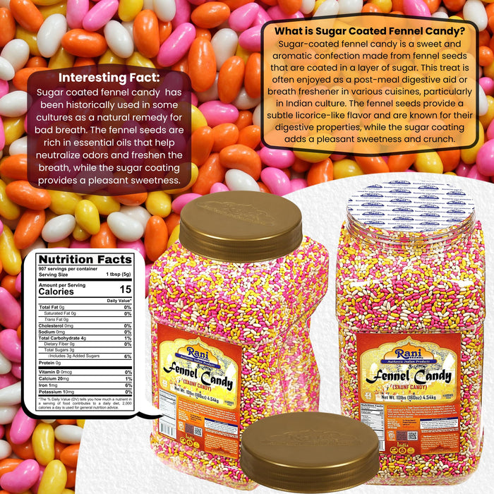 Rani Sugar Coated Fennel Candy 160oz (10lbs) 4.54kg Bulk PET Jar ~ Indian After Meal Digestive Treat | Vegan | Gluten Friendly | NON-GMO | Kosher | Indian Origin
