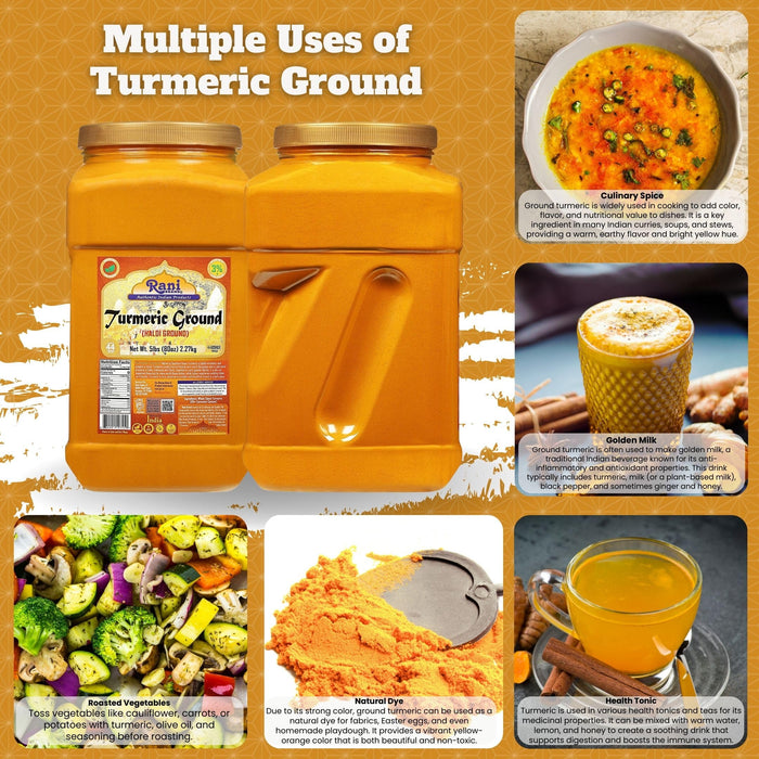 - ❤️NO FILLERS in any Rani Brand Spices (fillers are commonly used in spices to make them free flowing or lessen the costs of production) usually sodium or like product. NONE of our spices have any GMOs. Native to South Asian - farmed and cultivated at the source that has been doing for 1000's of years. Net Wt. 80oz (5lbs ) 2.27kg, Authentic Indian Product, Product of India Alternative Name (Indian) Haldi Ground