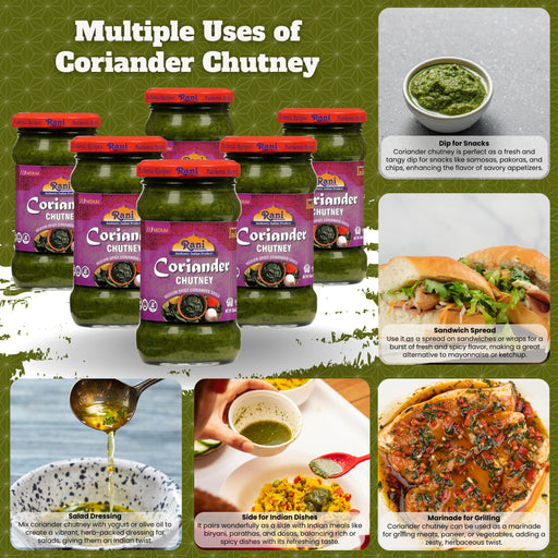 Product Type: ChutneyPackaging: Glass JarNet Wt. 10.5oz (300g) Product of India Ingredients: Water, Sugar,Fresh Coriander, Spices (Cumin, Black p...