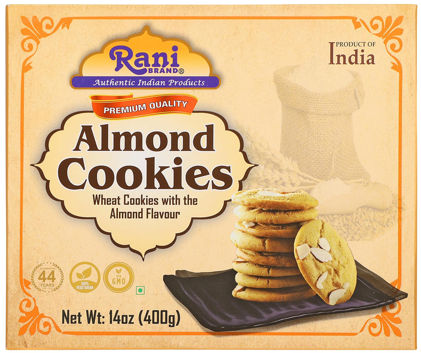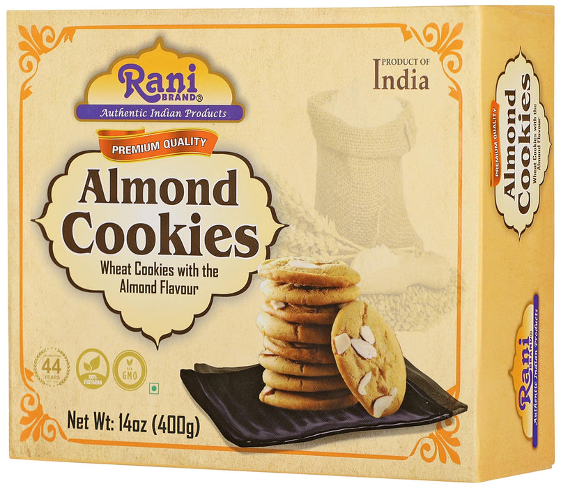 Rani Almond Cookies (Wheat Cookies with Almond Flavor) 14oz (400g) Pack of 3+1 FREE, Premium Quality Indian Cookies ~ Vegan | Non-GMO | Indian Origin