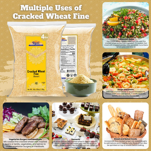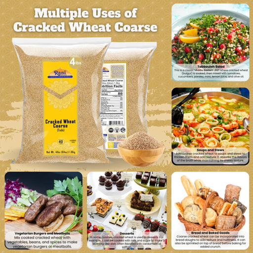 Product Type: Cracked WheatPackaging: Plastic BagNet Wt.: 4lb (64oz)Product of India Ingredients: Cracked Wheat Fine You'll LOVE our Cracked...