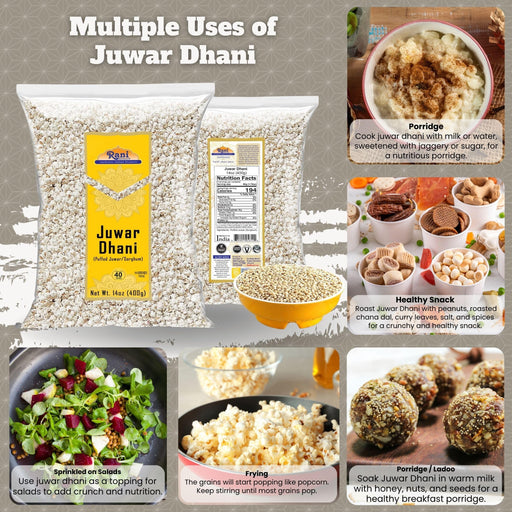 Product Type: PuffedPackaging: Plastic BagNet Wt. 14oz (400g)Product of India Ingredients: Juwar Dhani (Puffed Sorghum) You'll LOVE our Juwar D...