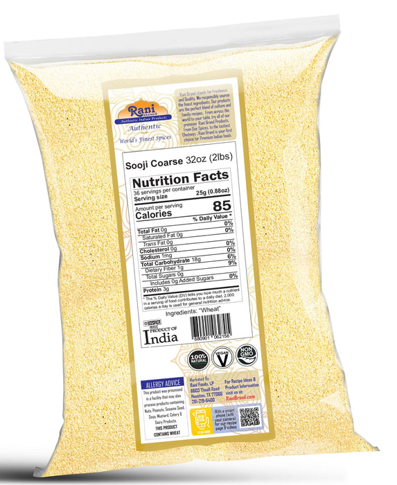Rani Sooji Coarse (Farina, Suji, Rava, Rawa, Wheat Semolina) Flour, 32oz (2lbs) 908g ~ All Natural | Vegan | NON-GMO | Kosher | Indian Origin