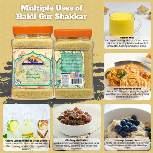 Product Type: SugarPackaging: PET JarNet Wt.: 17.5oz (1.1lbs) 500g Product of India Ingredients: Cane Sugar Extracted Juice, Turmeric Food Color F...