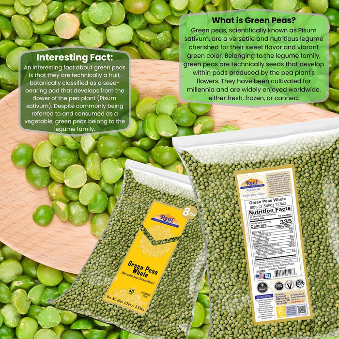 Rani Green Peas Whole, Dried (Marrowfat Peas, Vatana, Matar) 128oz (8lbs) 3.63kg Bulk ~ All Natural | Vegan | Kosher | Gluten Friendly | Product of USA