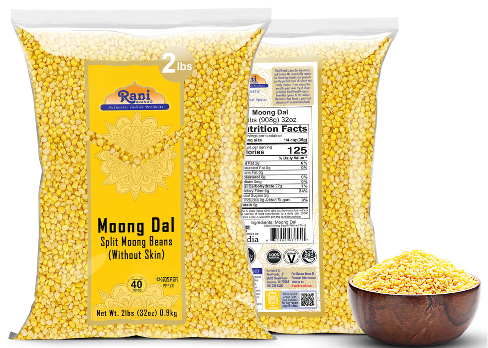 Rani Moong Dal (Split Mung Beans without skin) Indian Lentils, 32oz (2lbs) 907g ~ All Natural | Gluten Friendly | NON-GMO | Kosher | Vegan | Indian Origin