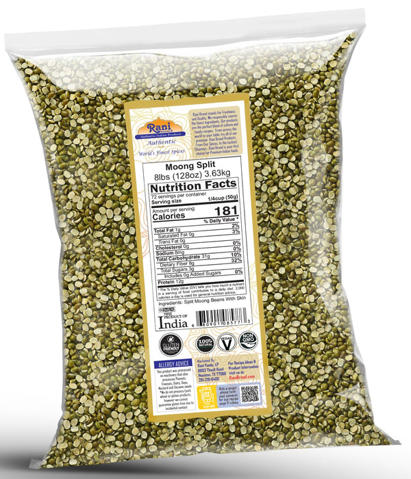 Rani Moong Split (Split Mung Beans with Skin) Lentils Indian 128oz (8lbs) 3.63kg Bulk ~ All Natural | Gluten Friendly | Non-GMO | Kosher | Vegan | Indian Origin