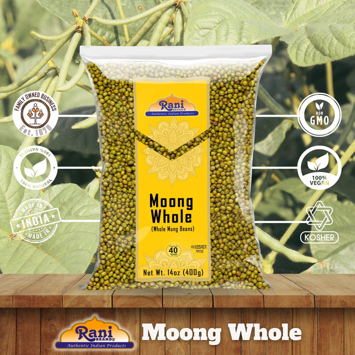 Rani Moong Whole (Ideal for cooking & sprouting, Whole Mung Beans with skin) Lentils Indian 14oz (400g) ~ All Natural | Gluten Friendly | Non-GMO | Kosher | Vegan | Indian Origin