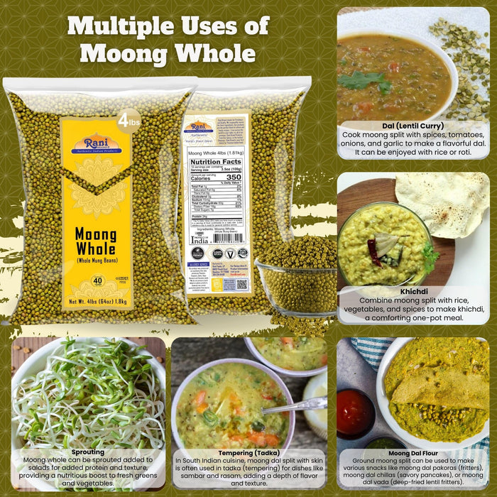 Rani Moong Whole (Whole Mung Beans with skin) Indian Lentils, 64oz (4lbs) 1.81kg ~ All Natural | NON-GMO | Kosher | Vegan | Indian Origin