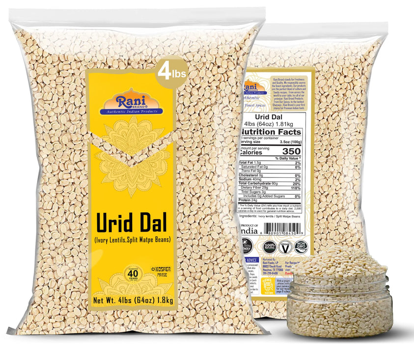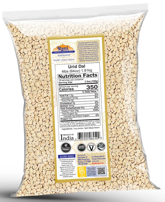 Rani Urid/Urad Dal (Split Matpe Beans Skinless) Indian Lentils 64oz (4lbs) 1.81kg ~ All Natural | Gluten Friendly | NON-GMO | Kosher | Vegan | Indian Origin