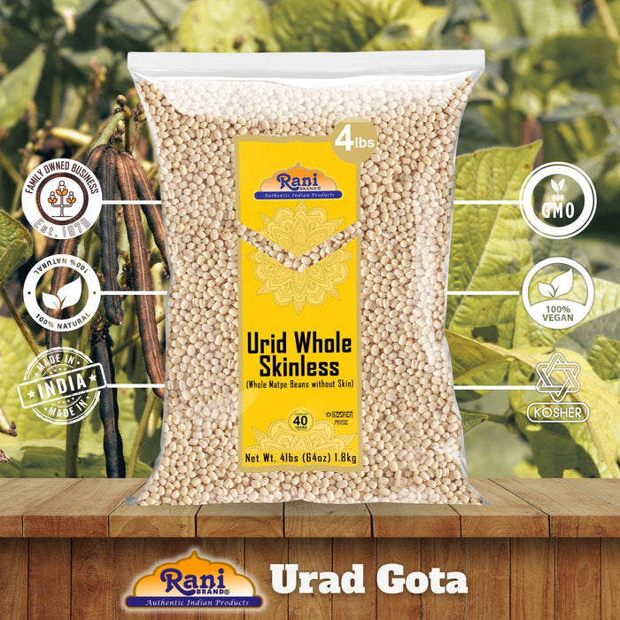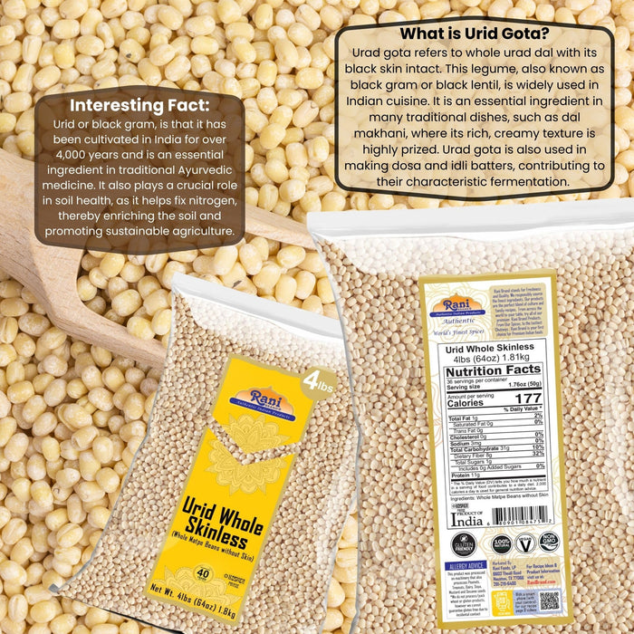 Rani Urid/Urad Gota White (Matpe Beans Skinless) Indian Lentils 64oz (4lbs) 1.81kg Bulk ~ All Natural | Gluten Friendly | NON-GMO | Kosher | Vegan | Indian Origin