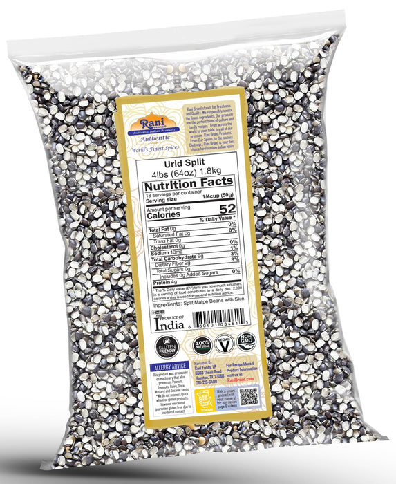 Rani Urid/Urad Split Chilka (Split Matpe Beans with Skin) Indian Lentils 64oz (4lbs) 1.81kg ~ All Natural | Gluten Friendly | NON-GMO | Kosher | Vegan | Indian Origin