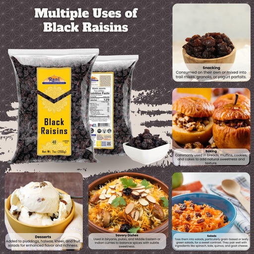 Product Type: RaisinsPackaging: Poly BagNet Wt.7oz (200g)Product of USA Ingredients: Black Raisins You'll LOVE our Black Raisins by Rani Brand--He...