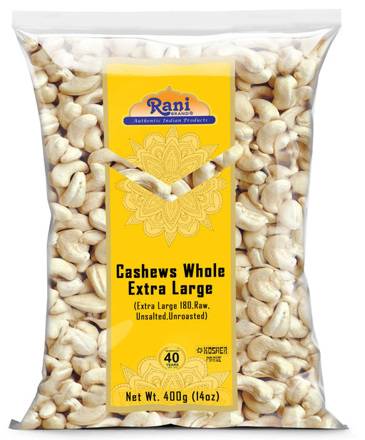 Product Type: NutsPackaging: Plastic BagNet Wt. 14oz (400g)Product of India Ingredients: Raw Cashews Whole 180 Extra Large You'll LOVE our Raw Cas...