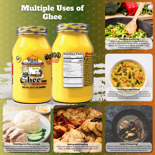 Product Type: OilsPackaging: Glass JarNet Wt. 32oz (908g) 2lbsProduct of India Ingredients: Clarified Butter from grass fed cows Clarified butte...