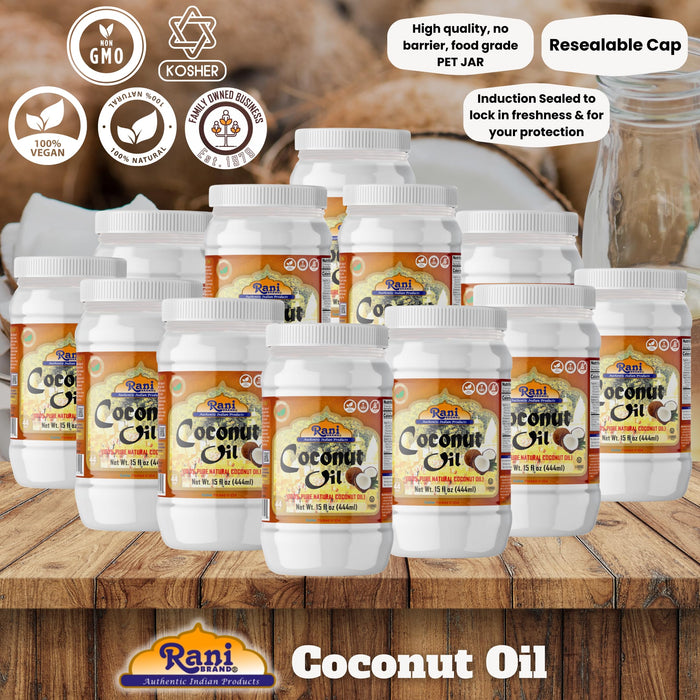 Rani Coconut Oil (100% Pure Natural Coconut Oil) 15 fl oz (444ml) Pack of 12, Cold Pressed, NON-GMO | Gluten Free | Kosher | Vegan | 100% Natural | Packed in USA
