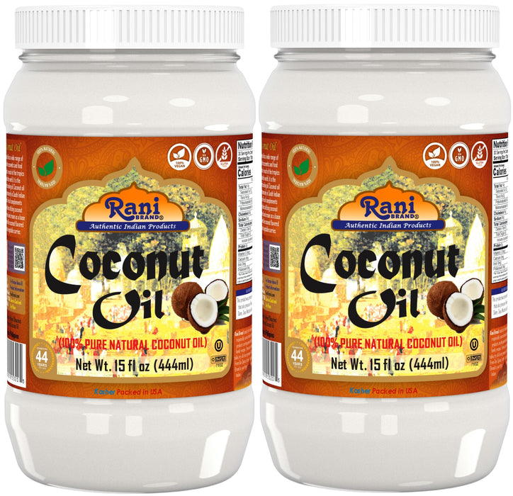 Rani Coconut Oil (100% Pure Natural Coconut Oil) 15 fl oz (444ml) Pack of 2, Cold Pressed, NON-GMO | Gluten Free | Kosher | Vegan | 100% Natural | Packed in USA
