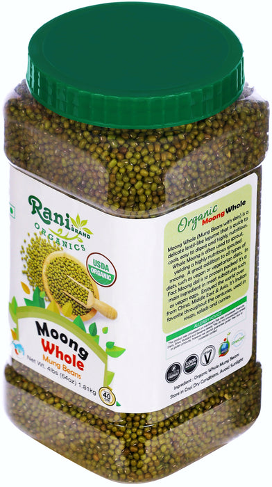 Rani Organic Moong Whole (Whole Mung Beans with Skin) Indian Lentils 64oz (4lbs) 1.81kg Bulk PET Jar ~ All Natural | Vegan | Gluten Friendly | NON-GMO