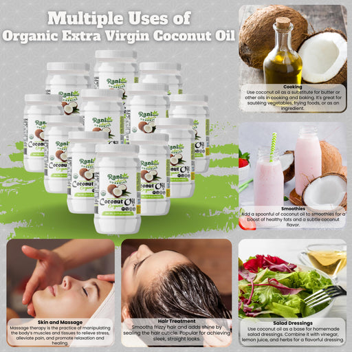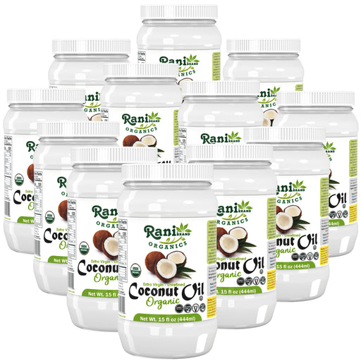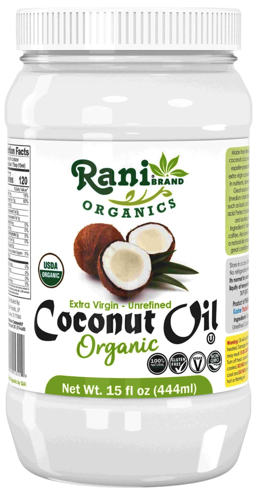 Rani's Virgin Organic Coconut Oil from the fresh flesh of the coconut palm fruit, (Cocus nucifera) is unrefined and expeller-pressed in a controll...