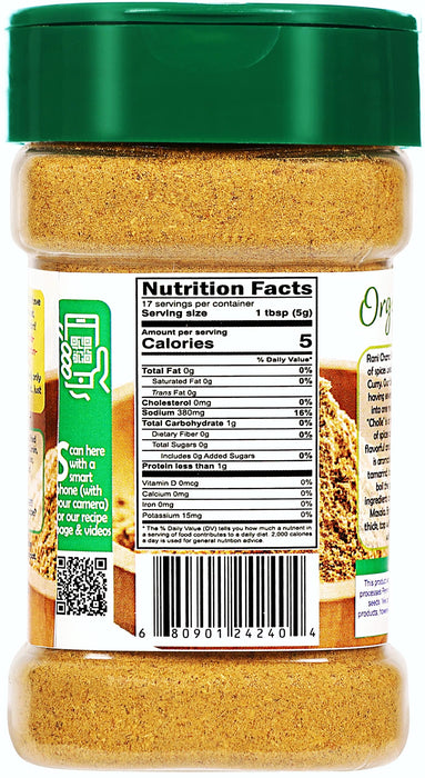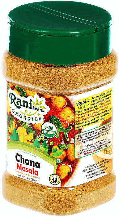 Rani Organic Chana Masala (Garbanzo Curry 9-Spice Blend) 3oz (85g) PET Jar ~ All Natural | Vegan | Gluten Friendly | USDA Certified Organic