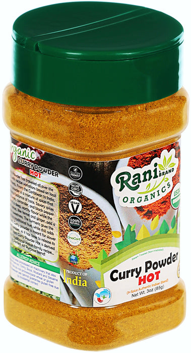 Rani Organic Curry Powder Hot (9-Spice Authentic Indian Blend) 3oz (85g) PET Jar ~ All Natural | Salt-Free | Gluten Friendly | USDA Certified Organic