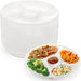 - 🍽️REDUCED PLATE CLUTTER: Made to have 5 round compartments to eliminate the need for multiple dishes or bowls to serve various foods, which can help reduce plate clutter and make mealtime more manageable.