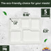 - 🍽️REDUCED PLATE CLUTTER: Made to have 5 square compartments to eliminate the need for multiple dishes or bowls to serve various foods, which can help reduce plate clutter and make mealtime more manageable.