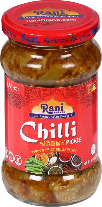 Rani Green Chilli Pickle Hot (Achar, Spicy Indian Relish) 10.5oz (300g) ~ Glass Jar, Natural | Vegan | Gluten Free | NON-GMO | Kosher | No Colors
