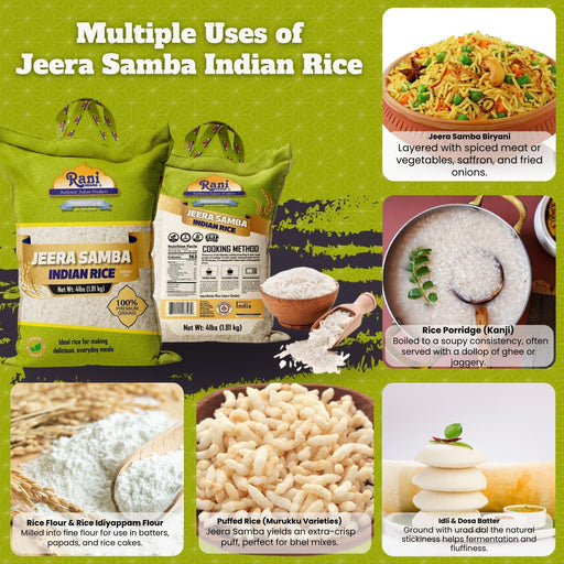 Product Type: RicePackaging: Reusable bagNet Wt.: 64oz (4lbs) 1.81kgProduct of India Ingredients: Rice (Jeera Samba) You'll LOVE our Jeera Samb...