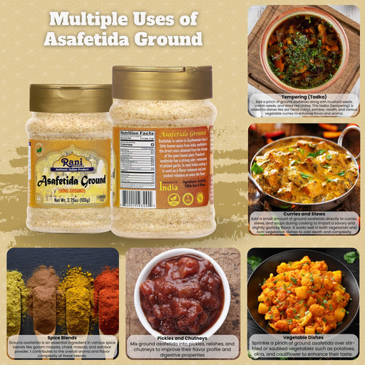 Product Type: GroundPackaging: Plastic BottleNet Wt. 3.75oz (106g)Product of IndiaIngredients: Asafoetida, Edible Gum, Rice Flour You'll LOVE our ...
