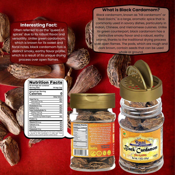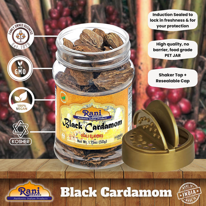 Rani Black Cardamom Pods (Kali Elachi) Whole Indian Spice 1.75oz (50g) PET Jar ~ Natural | Vegan | Gluten Friendly | NON-GMO | Kosher | Indian Origin