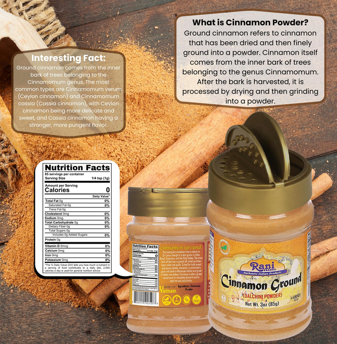 Rani Cinnamon Powder (Ground) Spice 3oz (85g) PET Jar ~ All Natural, Salt-Free | Vegan | No Colors | Gluten Friendly | NON-GMO | Kosher