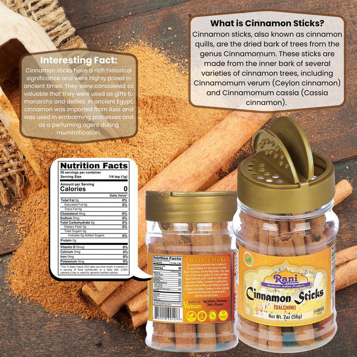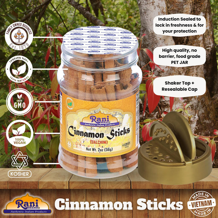Rani Cinnamon Sticks 2oz (56g) PET Jar - 10-13 Sticks - Strong Aroma, Perfect for Baking, Cooking & Beverages | 3+ Inches Length - Cassia Saigon Cinnamon from Vietnam | Kosher