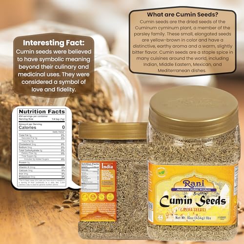 - ❤️Pure! NO FILLERS in any Rani Brand Spices (fillers are commonly used in spices to make them free flowing or lessen the costs of production) usually sodium or like product. NONE of our spices have any GMOs. Native to South Asian - farmed and cultivated at the source that has been doing for 1000's of years - Net Wt. 16oz (454gms), Authentic Indian Product, Alternate Names: Jeera (Hindi)