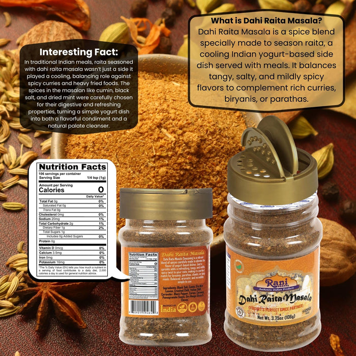 Rani Dahi Raita Masala (Yogurt's Perfect Spice Partner) 3.75oz (106g) PET Jar ~ Shaker Top | All Natural | Vegan | Gluten Friendly | NON-GMO | Indian Origin