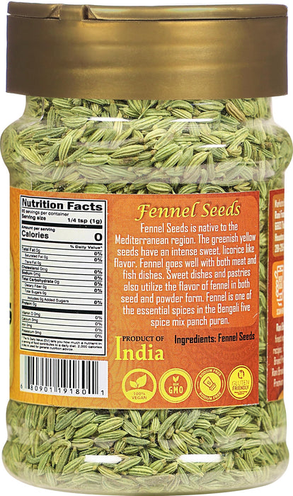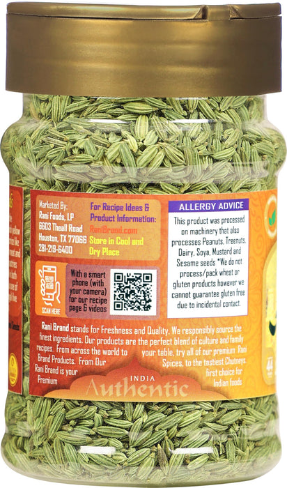 Rani Fennel Seeds (Saunf Sabut) Whole Spice 3oz (85g) PET Jar ~ All Natural | Gluten Friendly | NON-GMO | Kosher | Vegan | Indian Origin