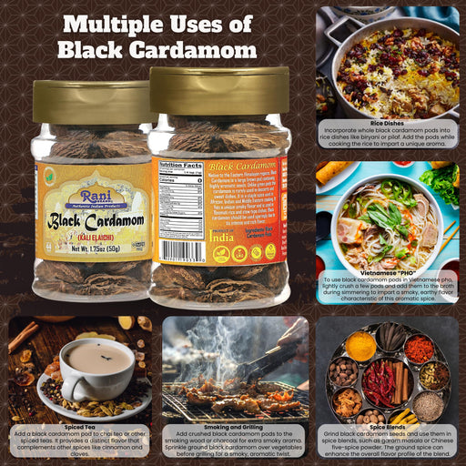 Product Type: Whole PodsPackaging: Plastic JarNet Wt. 3oz (85g)Product of India Ingredients: Black Cardamom Whole Pods You'll LOVE our Black Card...