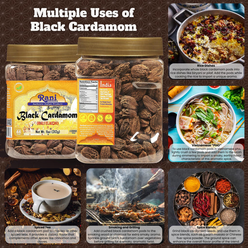 Product Type: Whole PodsPackaging: Plastic JarNet Wt. 11oz (312g)Product of IndiaIngredients: Black Cardamom Whole Pods You'll LOVE our Black Ca...