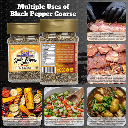 Product Type: Coarse Ground PowderPackaging: Plastic Jar / BagProduct of IndiaAlternative Name (Indian) Kali Mirch Ingredients: Black Pepper Coars...