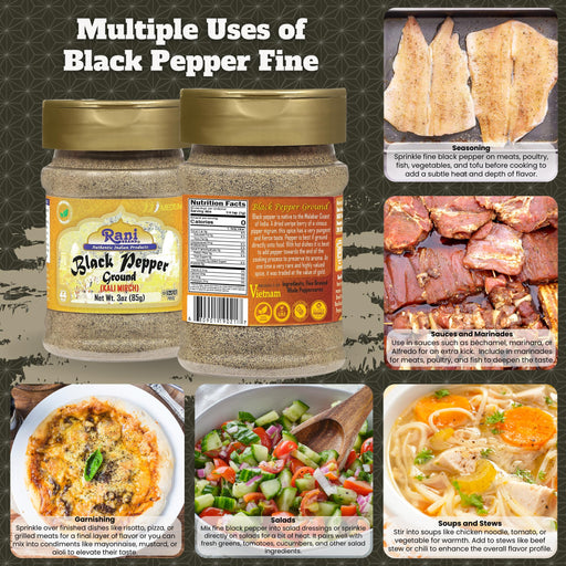Product Type: Fine Ground PowderPackaging: Plastic JarNet Wt. 3oz (85g)Product of VietnamAlternative Name (Indian) Kali Mirch Ingredients: Ground ...