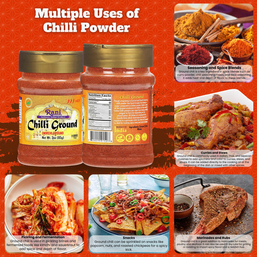 Product Type: PowderPackaging: Plastic JarNet Wt. 3oz (85g) Product of India Ingredients: Chilli Ground Powder You'll LOVE our Chilli (Hot Mirchi...