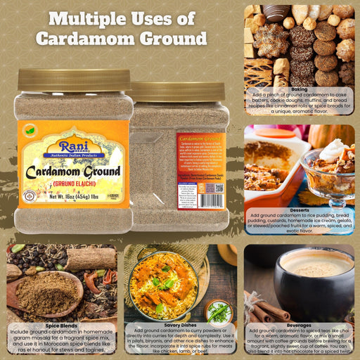 Rani Cardamom (Elachi) Ground, Powder Indian Spice 16oz (1lb) 454g PET Jar ~ All Natural | No Color Added | Gluten Friendly | Vegan | NON-GMO | Kosher | No Salt or Fillers